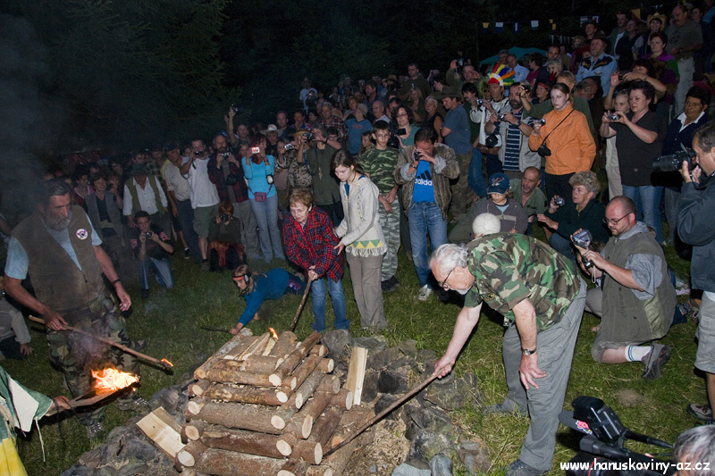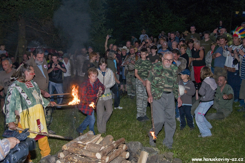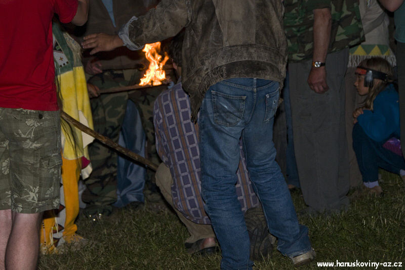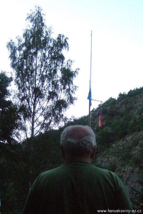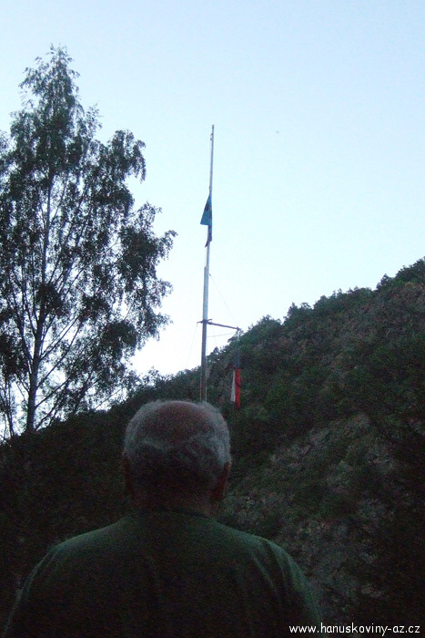 Obřad vztyčovani vlajky a zapalování ohně