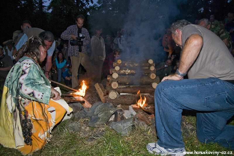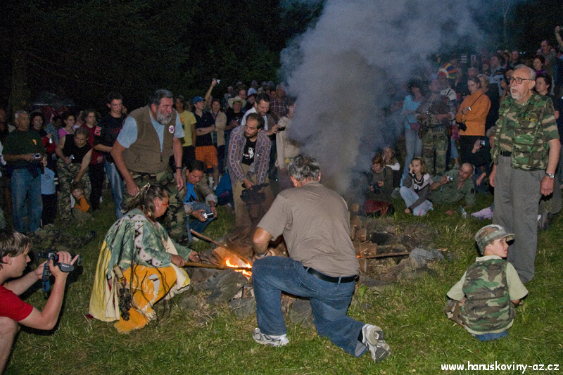 Obřad vztyčovani vlajky a zapalování ohně
